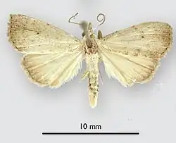 The wingspan is about 17 mm. Adults have been found from April to September in North Carolina, suggesting the species breeds continuously and likely has three or four generations per year.
