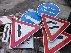 Road signs in Slovakia began developing in the early 20th century, influenced by Austro-Hungarian standards. After becoming part of Czechoslovakia in 1918, the country adopted a unified system of road signs. In the 1950s-60s, signs were updated to match international standards from the Vienna Convention on Road Signs and Signals, which Czechoslovakia signed. After Slovakia became independent in 1993, it kept most of the Czechoslovak traffic sign system, while in the process modernizing it.