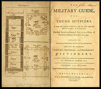 - Simes, Thomas; Dalrymple, Campbell (1776). The military guide for young officers. Philadelphia : Re-printed by J. Humphreys, R. Bell, and R. Aitken, printers and booksellers.