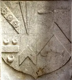 12. ^ Pole, p.486; Griggs, p.4, states the chevron is for Fulford, yet his grandfather's 2nd wife Anna/Alice Fulford, daughter of Sir Baldwin Fulford, was not an heiress (she had a brother) and thus the Fulford arms would not be quartered by the Cary family, according to the laws of heraldry