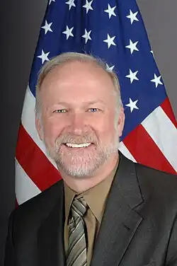 Previous overseas assignments include Deputy Chief of Mission in Maputo, Mozambique, Political Counselor at the U.S. Mission to the United Nations in Geneva, Switzerland, Political Officer at the U.S. Embassy in Wellington, New Zealand, Political/Economic Officer in Brasília, Brazil, and General Services Officer in Bissau, Guinea-Bissau. Domestic assignments included Deputy Director of the Office of Peacekeeping and Humanitarian Operations, Action Officer in the Office of Strategic and Theater Policy, Country Officer for Burma and staff assistant in the Bureau of Inter-American Affairs. Loftis joined the Foreign Service in May 1980. He speaks Portuguese and French and has received several State Department Superior and Meritorious Honor Awards, as well as the Chairman of the Joint Chiefs of Staff Joint Meritorious Civilian Service Award. He earned his B.A. in political science with distinction and honors from Colorado State University.[9]