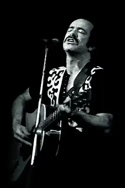 Hunter's participation in the Grateful Dead was dominated by his collaboration with Garcia, based on, according to McNally, "friendship, common experience, Hunter's extraordinary capacity for empathy, and his sterling ability to translate that into lyrics."[5] He also worked with other band members; on Workingman's Dead he worked with McKernan on "Easy Wind", and on American Beauty, with Lesh on "Box of Rain", and Weir on "Sugar Magnolia". He eventually decided he could only work with Garcia, and the duo wrote numerous songs together over the next 25 years.[5] Their relationship was often challenged by Garcia's difficulties with drug addiction; in 2015, Hunter said he was unhappy with the extent of cocaine use among band members in the mid-1970s.[2] Hunter was described as a "proudly irascible" presence in the band, who would often veto attempts to use the band's songs for commercial purposes.[1][2] After Garcia's death from a heart attack at a heroin rehabilitation clinic in 1995, the Grateful Dead disbanded.[18]