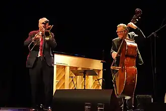 Jackson has been a jazz musician throughout his career, regarding the music as a complement to his academic pursuits, comparing the eclectic nature and creative development of the interpretive approach to jazz music.[47] His band, Spicy Jazz, has worked since the 1980s, mainly in the English Midlands. Jackson proposed trumpet player, bandleader, broadcaster and writer, Humphrey Lyttelton for an honorary doctorate at the University of Warwick, which was awarded in 1987. Lyttelton appeared as a guest with Spicy Jazz and wrote the sleeve note for their recording, Coming of Age.[48] Following Humphrey Lyttelton's death in 2008, Jackson accepted an invitation to become patron of the Humph Trust.[49] Jackson has also played Jazz in Sweden and in Norway, including playing with Bjørn Alterhaug, Vigleik Storaas and other leading Norwegian jazz musicians.