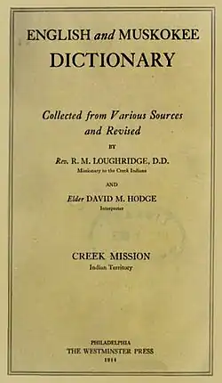 - ^ "Report of the Reverend R. M. Loughridge to the Board of Foreign Mission Regarding the Creek Mission" (PDF). Oklahoma Historical Society. Retrieved 2008-01-18.