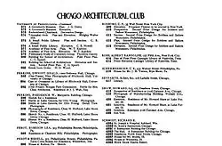 The club was an effort to help develop the talents of the city's many draftsmen so that they could become qualified architects themselves, at a time when a formal education for architects was generally unavailable and not required. (The first architectural school in the United States was founded by architect William Robert Ware at MIT in 1868 with nine students, and even by 1896, the year after Seyfarth's graduation, there were only nine schools in the country with a combined student body of 273.[41]) Seyfarth joined during the time he worked for Maher, who over the years was an active member of the club as a speaker, writer, exhibitor and judge in its annual competitions. Seyfarth is known to have entered his work at two of these exhibitions [42] - the first time in 1903 (before he became a member), when his submission was listed as a "Library",[43] and again in 1905, where the subject of the entry was his own house in Blue Island.[44] The preface to the catalogue of the 1905 exhibition was devoted to what the noted architect Elmer Grey (1872–1963) called "Inventive and Indigeonous Architecture", a phrase which perfectly reflected Seyfarth's design for this particular house and may have been one of the reasons why images of it were included.