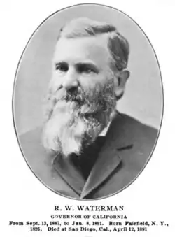 Robert Whitney Waterman (December 15, 1826 – April 12, 1891) was an American politician. He served as the 17th governor of California from September 12, 1887, until January 8, 1891.