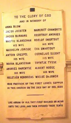 Roelof's second objective in visiting Holland had been to obtain a settled pastor for Esopus, and it was apparently accomplished on March 4, 1661, Thomas Chambers, Cornelius Barentsen Slecht, Gertruy Andries, Roeloff Swartwout, Alaerdt Heymensen Rose and Juriaen Westvael agreed in writing to give Blom (the Dutch pastor) as salary for the first year, to commence 9/5/1660,the sum of 700 guilders in corn, at beaver valuation in case his farm should fail, we promise further to put the farm in good order according to contract as soon as the land has been allotted and raise that sum at the latest for the coming farming season.