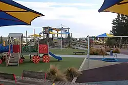 In the 1970s, Prime Minister Norman Kirk had a dream of turning the town of fewer than 1,000 people into a city of 80,000.[6] He nicknamed it the "Town of the Future", however the single "Town of the Future" sign has long since been removed from the entrance to Rolleston.[7][8][9][10][11][12][13]