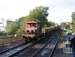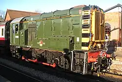 | British Rail | 0-6-0DM | 09 | D4106 (previously 09018). Bought by a consortium of locomotive department volunteers, D4106 is on loan to the railway on an "at-cost" basis where the railway hires it until the members receive their funds back. The higher gearing of an 09 compared to an 08 allows it to be used in emergencies on passenger services at 25 mph (40 km/h), a role it undertook for the first time during summer 2013. | |