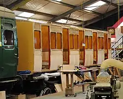 | LBSCR | 328 | Stroudley 4-wheel Third | Built in 1890. Moved into the works in early 2010. The underframe has been refurbished and work on reconstructing the bodywork is underway. |