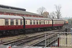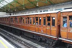 Four carriages built in 1898 and 1900 for use out of Baker Street station in London. Initially steam hauled, later used in electric trains, reverting to steam haulage on the Chesham branch in 1940. Purchased by the Bluebell Railway in 1961, and used until withdrawn in the late 1960s in need of major attention. Now returned to service and are unique as a close-coupled set of vintage carriages. The restoration team were the recipient of the Heritage Railways Association's award as overall winner of their 2006/7 carriage competition. The carriages have seen regular use on London Underground in recent years as part of steam operations on the Metropolitan line, and possess TOPS identities for movements over the Network Rail network to and from London.