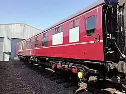 Vacuum braked, steam heated, owned by MNRPT. Previously on the Llangollen Railway.[46] |
