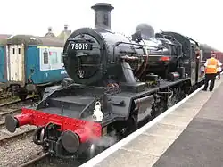 Until 2019 there were no steam locomotives based on the line, with the Mid-Norfolk hiring steam locomotives based on other railways for use during the Summer season and most remaining services utilising diesel traction. Sentinel 4wVBT 9596 "George"[9][10] and Robert Stephenson & Hawthorns 0-4-0ST 7818 "Castle Donington Power Station No. 2"[11] are stored in the former yard at Yaxham, independently of the MNR. Great Western Railway 0-6-0 PT '9466' was a regular visitor to the line, but wasn't based at Dereham.