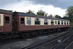 Built in 1956 at York. One of the first two carriages delivered to the Watercress Line by rail in 1976.[42][65] | British Railways Green |