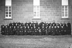 Clergy of the Diocese of Chatham in Caraquet in 1930 with bishop Patrice Alexandre Chiasson in the center