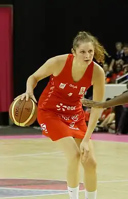 After a season in Slovakia, she returned to France and was signed by the first division team Cavigal Nice Basket in August 2015.[7] She stayed there for two years and moved to Lattes Montpellier within the French league for the 2017/18 season and also competed with the club in the EuroLeague.[8][9] Bär went to Brisbane, Australia, and played for the Southern District Spartans in the Queensland Basketball League (QBL) in the 2018 summer season, winning the championship title.[10][11] In the 2018/19 season, she played for Villeneuve-d’Ascq in France.[12]