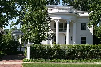 The Root-Badger House is a historic house at 326 Essex Road in Kenilworth, Illinois. The house was built in 1896 for music publisher Frank K. Root. Architect Daniel Burnham, who was the lead architect for the 1893 World's Columbian Exposition, designed the Neoclassical house. Burnham's work on the Columbian Exposition popularized Neoclassical architecture throughout the country, and his later works such as the Root-Badger House continued in this tradition. The house's design includes a two-story rounded portico supported by four Ionic columns, a balcony above the front door, an entablature with a dentillated cornice, and a balustrade encircling the roof.[3]