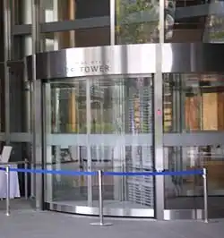 While on a tour of Mori Tower on the morning of 26 March 2004, six-year-old Ryo Mizokawa was killed in a revolving door at the building's second-floor main entrance. Mizokawa's head was crushed between the door rotating from his left and the outer frame; he died two hours after reaching the hospital.[12] The door's motion safety sensor was originally set to detect anything standing 80 centimeters (31 in) tall. This setting was changed to 135 centimeters (53 in), however, after the door began stopping unnecessarily when detecting a newly installed safety barrier nearby. After the incident, it was revealed that 32 people had previously sustained injuries caused by revolving doors at Roppongi Hills since the complex opened less than a year earlier.[13] In September of the same year, in an out-of-court settlement, the Mizokawa family received a compensation payment of approximately 70 million yen from the building's operator, Mori Building Company.[14][15] This sum was approximately equivalent to the cost of two doors of the type that caused the fatality.[16]