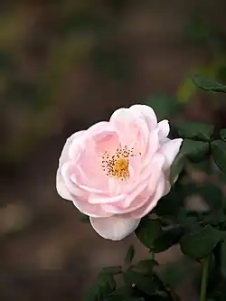 Rosa 'English Miss' is a Floribunda rose bred by Roger Pawsey of Cants of Colchester, Essex in 1977. The cultivar was introduced into Great Britain in 1979. The plant is a compact, bushy shrub with light pink camellia-like flowers. It is disease resistant and blooms continuously from June to mid-October.