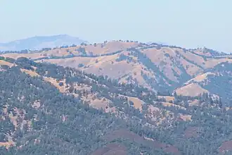 ![]() Rose Peak seen from Mount Hamilton. Mount Diablo is in the background on the left. | |