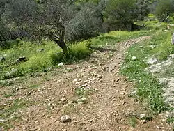 In the section between Mount Canaan and Rosh Pina, the stream descends relatively steeply, at about 400 meters (1,300 ft) over about two kilometers (1.2 mi). Despite the elevation differences, no waterfalls or overly steep slopes formed, allowing a road to be paved along the stream. This road, which connected Safed to Tiberias via Rosh Pina, was mostly paved with stones, but jeeps and ATVs that traveled freely in the 1990s and early 2000s (until 2007) severely damaged the road, creating deep ruts in some parts that diverted the stream's flow onto the road. Due to the road's steep and challenging nature, the Rosh Pina-Safed road (now Route 8900) was paved during World War I, providing a more moderate slope between Tiberias, Rosh Pina, and Safed. Short sections of the old stone-paved road still exist today.[2]