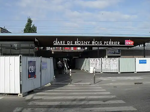 Rosny–Bois-Perrier station (French: Gare de Rosny–Bois-Perrier; French pronunciation: [ʁoni bwa pɛʁje]) is a French metro and railway station in Rosny-sous-Bois, in Seine-Saint-Denis département, in Île-de-France region. It is named for and located in the Bois-Perrier district.