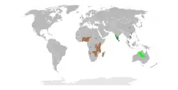- Rothia indica (L.) Druce – western and southern India, southeastern China, Laos and Vietnam, Peninsular Malaysia, and northern Australia