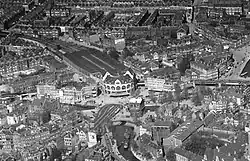 To the very left is the railway line between Rotterdam Centraal and Blaak. -