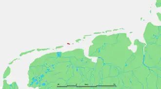 In 1959, the Boschplaat merged with Rottumerplaat.[2] Sediment deposition has caused the island to become significantly larger in recent years.[1] Access to the island is prohibited since Rottumerplaat is a resting and forage area for numerous bird species.[1] Rijkswaterstaat and Staatsbosbeheer are responsible for the administration of the island.[3] Rottumerplaat is the northernmost point of the Netherlands.[4]