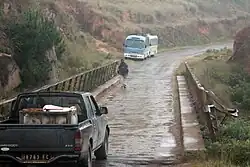 It had been completely renovated in 2012.[1] N35 paved from N7 to Ambatofinandrahana. Unpaved with 2 broken bridges requiring temporary repairs to traverse to Itremo. Bridge at Itremo impassable by vehicle. From Malaimbandy to Mandrosonoro unpaved except for a paved section a few kilometers with one section of road only difficultly traversable by 4 wheel drive vehicle or motorcycle. This information is based on personal experience with the road in June 2015.