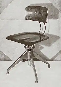 Over the years, the product range changed and Rowac concentrated more and more on steel furniture and industrial equipment. It specialised in creating ergonomic seating for workshops and offices.[2] At least once a year, the products were exhibited at the Leipzig Trade Fair (Leipziger Messe).[2] The Rowac stool in particular earned a strong reputation. It is considered the first industrially produced steel stool[2] and was widely used in the 1920s. The reason for this was its superior durability compared to simple wooden stools, which had to be repaired again and again due to cracks, loose legs, etc.[9][10] It is of particular note that in 1923 architects Max Taut und Franz Hoffman chose Rowac stools to furnish the administration building of the General German Trade Union Federation in Berlin-Mitte, and in 1926 the stools found a place in the classrooms and workshops of Walter Gropius' Bauhaus building in Dessau.[11]