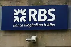 - ^ Token and symbolic use of the Scottish Gaelic name occurs on some Royal Bank of Scotland buildings and customer stationery such as cheque books. Gaelic is not used on the Royal Bank of Scotland website, for contracts or on their banknotes.
