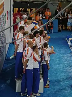 Competition swimming is considered a top sport in the Netherlands where swimmers such as Pieter van den Hoogenband, Inge de Bruijn, and Ranomi Kromowidjojo have brought home Olympic success.[2] All Dutch swimming records are ratified by the KNZB. Virtually all swim clubs of the Netherlands are member of the KNZB. Membership benefits include the right to participate in competitions, discounts to attend courses and liability insurance.[3]