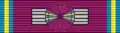 The ribbon of the order is amaranth purple, with narrow pale yellow edge stripes bordered with pale blue, a combination of the ribbons of the Order of Leopold and the Order of the African Star.[2] When awarded in war time, the ribbon of the order may be adorned with a silver or gold palm. The ribbon bar is worn on the semi-formal dress uniform.