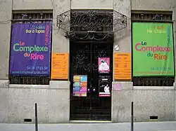 The architecture is quite simple, without frills. There is a row of old four to five-storey houses with sober facades and beautiful doors and sometimes arches. There are in this street the municipal police station, several shops and boutiques, an association for gays, the café-théâtre Le Complexe du Rire and a Church of Scientology in the square.[6]