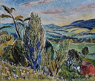His initial style was largely cubist, but by the 1920s he had come to favor an older, Post-Impressionist style.[3] Landscapes formed a large part of his output. He exhibited frequently at the Pennsylvania Academy, the Salon d'Automne, the Salon des Tuileries, and the Salon des Independents, among others.