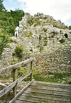 The Ruins of Radegg are the ruins of a spur castle built around the year 1200 in the Canton of Schaffhausen, Switzerland and destroyed around the year 1300. It is located high above the Wangental on a spur of the Rossberg which drops off steeply on three sides in Osterfingen in the municipality of Wilchingen.