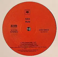 "Rule" is the first single from American rapper Nas' 2001 album Stillmatic. It features a chorus sung by Amerie and production provided by Poke and Tone of Trackmasters Entertainment. The song is known for both sampling and interpolating "Everybody Wants to Rule the World" by Tears for Fears.
