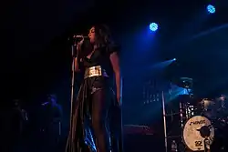 Mauboy performed "Running Back" on the elimination show of Australian Idol in October 2008, wearing a black dress and heels with her hair tied up in a bun.[31] Mauboy was a former contestant of the show in 2006, and became runner-up to Damien Leith.[31] She also performed the song at the 2008 Sydney New Year's Eve event.[32] On 11 January 2009, Mauboy performed "Running Back" during a Twenty20 cricket match at the Melbourne Cricket Ground.[33] At the 2009 MTV Australia Awards, Mauboy performed a medley of "Running Back" and "Been Waiting", which broadcast in 162 countries.[34] She also performed "Running Back" at her first 'Live at the Chapel' concert, held at the Paddington Uniting Church in Sydney on 9 July 2009.[35] In September 2009, Mauboy performed the song during Beyoncé's Australian leg of her I Am... World Tour, in which she served as a support act.[36] She also became a support act for Chris Brown's Australian F.A.M.E. Tour in April 2011, and performed "Running Back".[37] For the performance, Mauboy wore a "skin-tight black spandex ensemble with silver glittery" boots.[37] In January 2012, Mauboy performed the song during her Galaxy Tour in Australia, dressed in a black and gold dress and silver diamond high heels.[38] A live version of "Running Back" was included on Mauboy's extended play iTunes Session (2014).[39]
