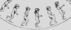 The structure of the human foot and lower leg is very efficient at absorbing the shock of landing and turning the energy of the fall into forward motion, through the springing action of the foot's natural arch. Scientists studying runners' foot motions have observed striking differences between habitually shod runners (wearing shoes) and barefoot runners. The foot of habitually shod runners typically lands with an initial heel strike, while the foot of a barefoot runner lands with a more springy step on the middle, or on the ball of the foot.[1] In addition, the strike is shorter in duration and the step rate is higher. When looking at the muscle activity (electromyography), studies have shown a higher pre-activation of the plantar flexor muscles when running barefoot.[13] Indeed, since muscles' role is to prepare the locomotor system for the contact with the ground, muscle activity before the strike depends on the expected impact. Forefoot strike, shorter step duration, higher rate and higher muscle pre-activation are techniques to reduce stress of repetitive high shocks.[13] This avoids a very painful and heavy impact, equivalent to two to three times the body weight.[12]