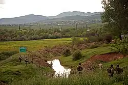 On 2 August 2009, Russian troops reportedly moved the South Ossetian boundary markers about 500 metres (0.3 mi) into the Georgian-controlled territory in the village of Kveshi.[59] However, on 4 August the Russians removed the iron posts they had installed earlier in Kveshi.[60] The demarcation of the South Ossetian boundary in Shida Kartli started in 2011 with the construction of a few fences in Ditsi and Dvani, but it was stopped after local negotiations.[61]