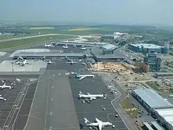 Václav Havel Airport is located in this district. Czech Airlines has its head office on the grounds of the airport.[2] Travel Service Airlines and its low cost subsidiary Smart Wings have their head office on the airport property.[3][4] In addition the Civil Aviation Authority also has its head office on the airport property.[5]