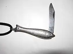 Rybička (English: Little Fish[1]) is a small Czech pocket knife with the handle shaped as a fish.[2] It has been produced since the first decades of the 20th century.[3] The knife was particularly popular during the period of socialism in Czechoslovakia.[4] It was valued as a simple and small tool used for mushroom picking, a traditional Czech hobby.[1] It was very popular and sold in large numbers on the Czechoslovak market. As of 2014, it is produced by the company Mikov in Mikulášovice, Czech Republic.