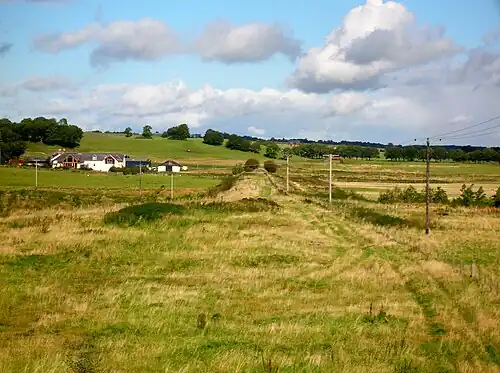 The nominal junction between the Caledonian Railway and the Glasgow and South Western Railway was at the county boundary at Loudounhill Station. The closed line was used to store hundreds of damaged railway waggons that were awaiting repair.[4]