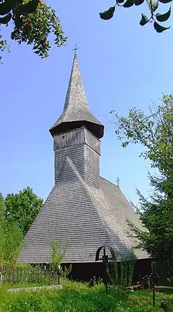 The Sârbi Susani church stands in the village of Sârbi, Budești commune, in the Cosău valley of Maramureș County, in the historical region of Maramureș, now in Romania. This church is a surviving representative of the oldest wooden churches of Maramureș: those with only one level of eaves.