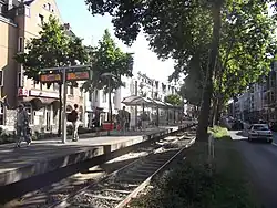 Sülzburgstraße is a station on the Cologne Stadtbahn line 18, located in the Cologne district of Lindenthal. The station lies on Luxemburger Straße at its junction with the shopping street Sülzburgstraße, after which the station is named.