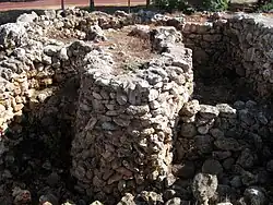 Within the current town there are the remains of the Poblat Talaiòtic de s'Illot, a Talaiotic village. The earliest discoveries on the site date from 2200 BC[2] and the talliot itself dates from around 1100 BC. The site reflects the Talaiotic culture of the Balearic islands between the late 2nd millennium BCE and the Punic Wars in the late 1st millennium BCE.[11] The approximately 200 inhabitants of the settlement mainly practiced agriculture. Of great importance were hunting and the breeding of pigs and sheep. At the village's centre was a square talaiot (a megalithic structure of uncertain purpose) surrounded by 35 houses, which in turn were surrounded by the defensive wall of the town. In 123 BC the settlement was abandoned as a result of Roman colonization of the island. Between 1960 and 1970 the settlement was excavated by archaeologists from the University of Marburg. The remains are now located in a public square set amongst housing and hotels. The site is open to the public following a redevelopment project which has added walkways and picnic areas,[12] viewing platforms and interpretation boards, and a visitor centre.[2]