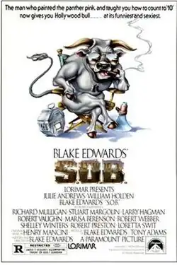 S.O.B. is a 1981 American satirical black comedy film written and directed by Blake Edwards, starring Julie Andrews, Richard Mulligan, Robert Preston, Larry Hagman, Robert Vaughn, Robert Webber, Loretta Swit, Shelley Winters, and William Holden in his final film role.[3][4][5][6] The film was produced by Lorimar and was released by Paramount Pictures on July 1, 1981.