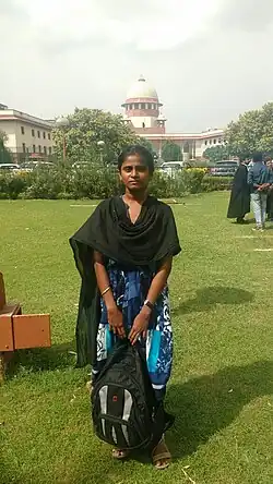 Anitha implead herself in the petition in the Supreme Court against NEET claiming it was against the interests of rural students after a case was filed by Central Board of Secondary Education students represented by senior advocate Nalini Chidambaram, wife of P. Chidambaram, who argued that admissions should be made only on basis of NEET.[18] After the Supreme Court of India verdict which stated that admissions should be made only based on NEET, Nalini Chidambaram stated, "Any further appeal against NEET can only be done to God," and that the Tamil Nadu government could no longer do anything for State Board students after the Supreme Court verdict.[19][20]