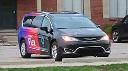 Flex vehicles are driven by independent contractors, referred to by Via as "driver partners."[45] The fleet used for Flex, owned by Avis Budget Group,[45] consists mostly of Chrysler Pacifica and Toyota Sienna minivans. Each vehicle seats three to five Flex passengers, and some are equipped to transport wheelchairs.